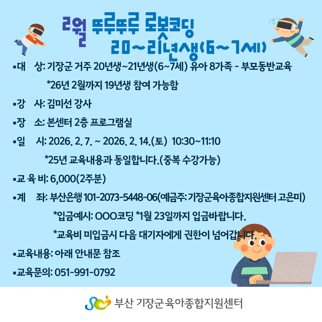 | 2026³â 2¿ù ÁÖ¸»ÇÁ·Î±×·¥ ¶Ñ·ç¶Ñ·ç ·Îº¿ÄÚµù 6~7¼¼ | |||