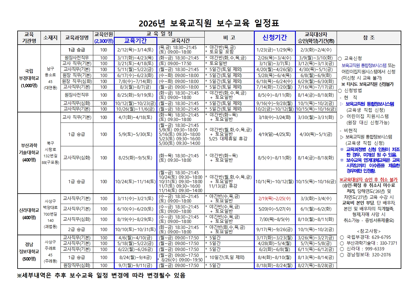 2026³â º¸À°±³Á÷¿ø º¸¼ö±³À° ÀÏÁ¤Ç¥