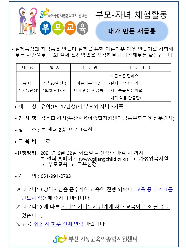 (Äڷγª19ÀçÈ®»êÀ¸·Î ±³À°Ãë¼Ò) [°øÅëºÎ¸ðÀÚ³àüÇèȰµ¿]16:20~17:30 '³»°¡ ¸¸µç Àú±ÝÅë' (15~17³â»ý)
