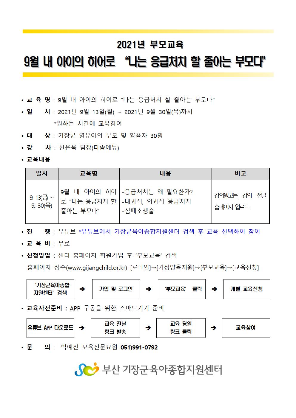 | ¹®ÀÇ | ¹Ú¿¹Áø º¸À°Àü¹®¿ä¿ø 051-991-0792 | ||