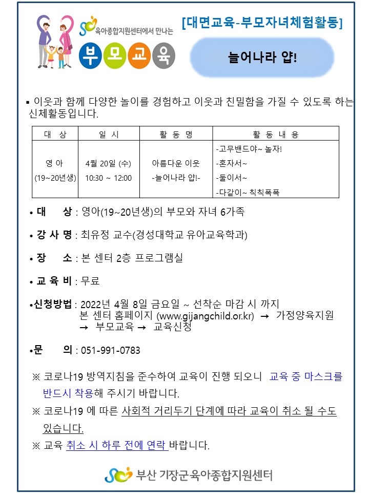 | [°øÅëºÎ¸ðÀÚ³àüÇèȰµ¿]10:30~12:00 '´Ã¾î³ª¶ó ¾å' (19~20³â»ý) | |||