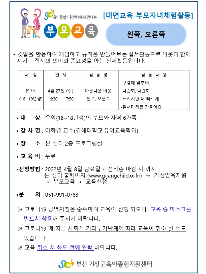 | [°øÅëºÎ¸ðÀÚ³àüÇèȰµ¿]16:30~17:50 '¿ÞÂÊ, ¿À¸¥ÂÊ' (16~18³â»ý) | |||