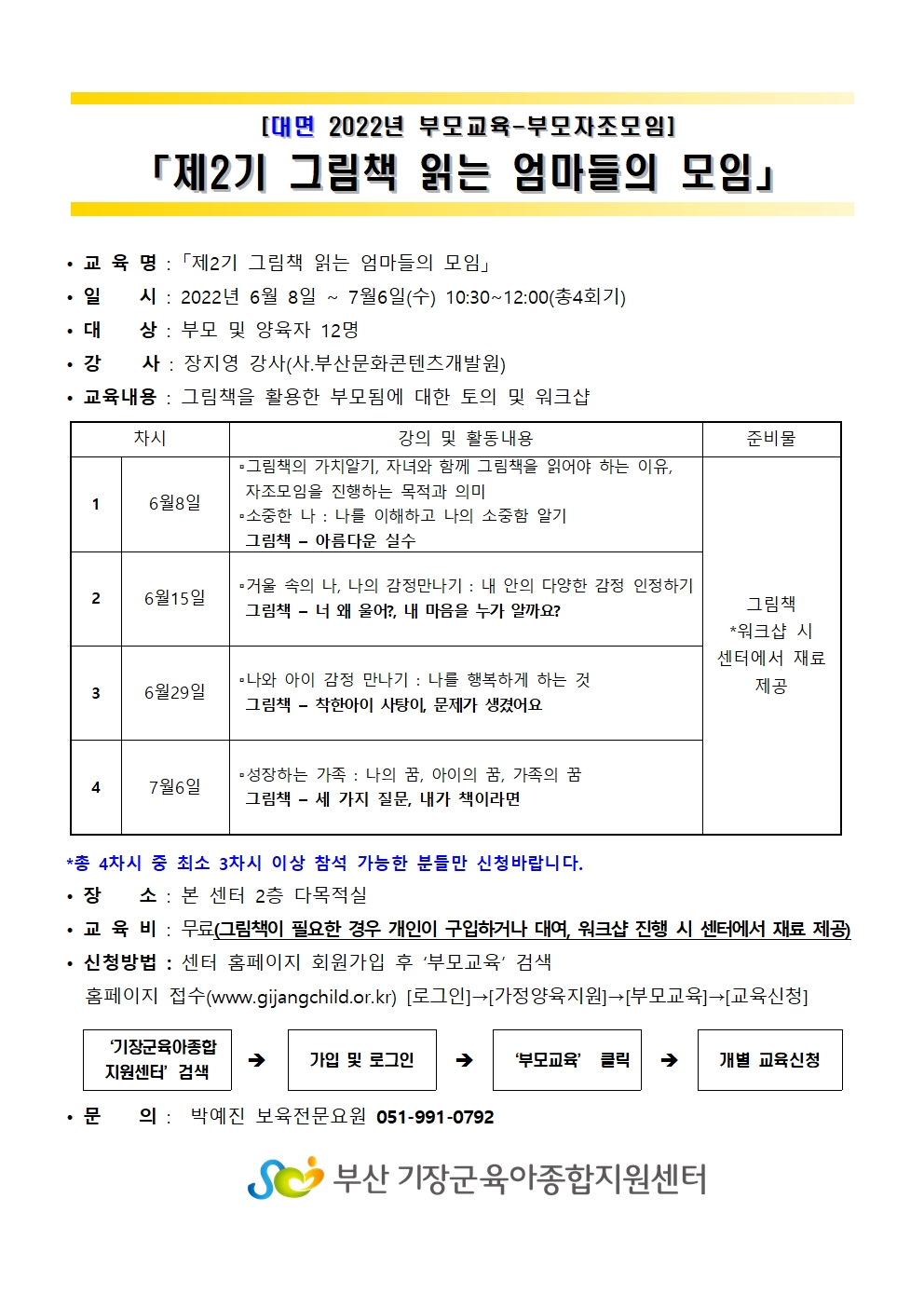 | ¹®ÀÇ | ¹Ú¿¹Áø º¸À°Àü¹®¿ä¿ø 051-991-0792 | ||