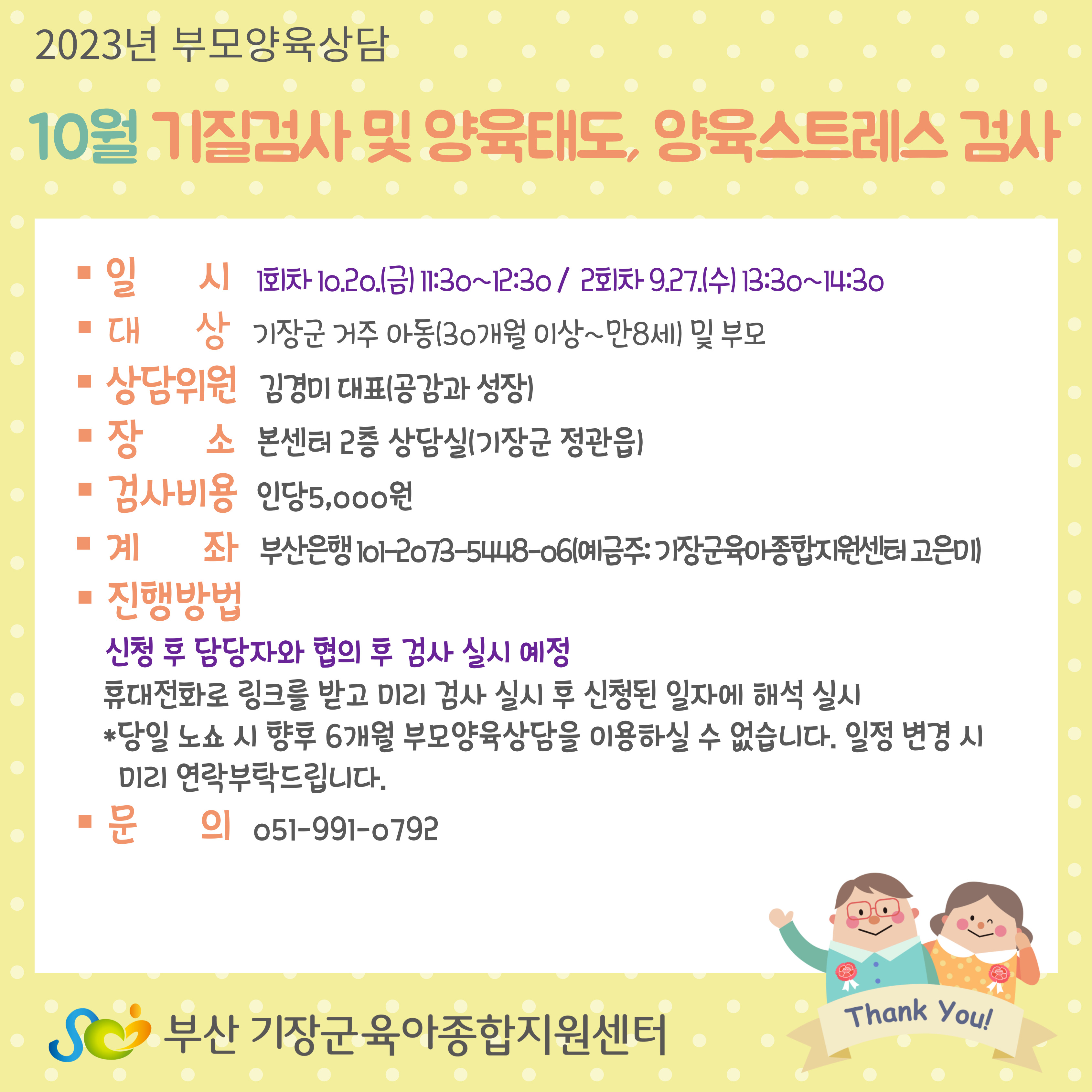 | ¹®ÀÇ | ¹Ú¿¹Áø º¸À°Àü¹®¿ä¿ø 051-991-0792 | ||
