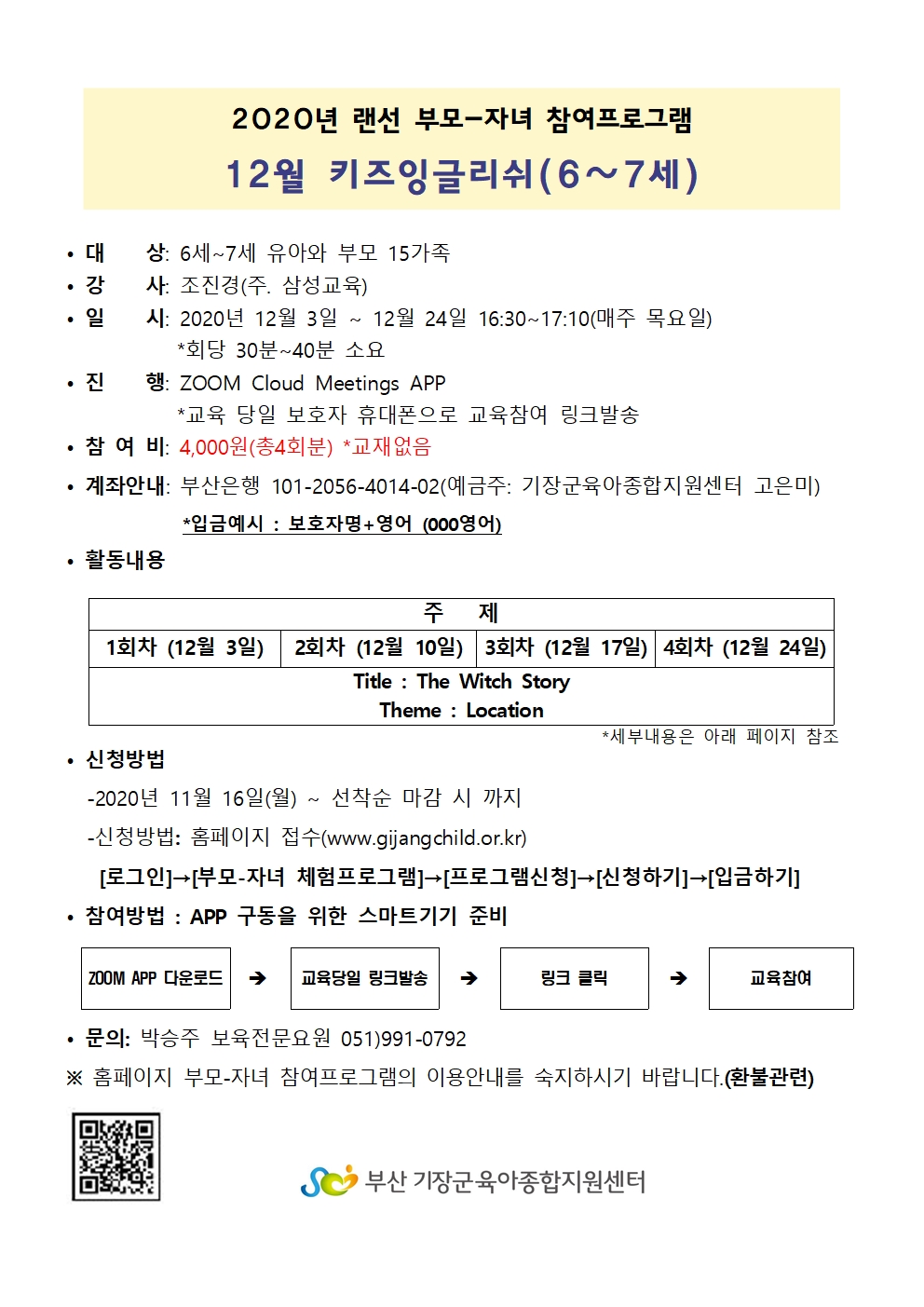 | 12¿ù ·£¼± ºÎ¸ð-ÀÚ³à Âü¿©ÇÁ·Î±×·¥ ŰÁîÀ×±Û¸®½¬ 6~7¼¼ | |||