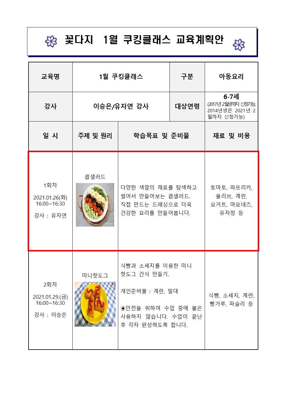 | 2021³â 1¿ù ·£¼± ºÎ¸ð-ÀÚ³à Âü¿©ÇÁ·Î±×·¥ Àç¹ÌÄî¿ä¸®Äî(6~7¼¼) 1 | |||