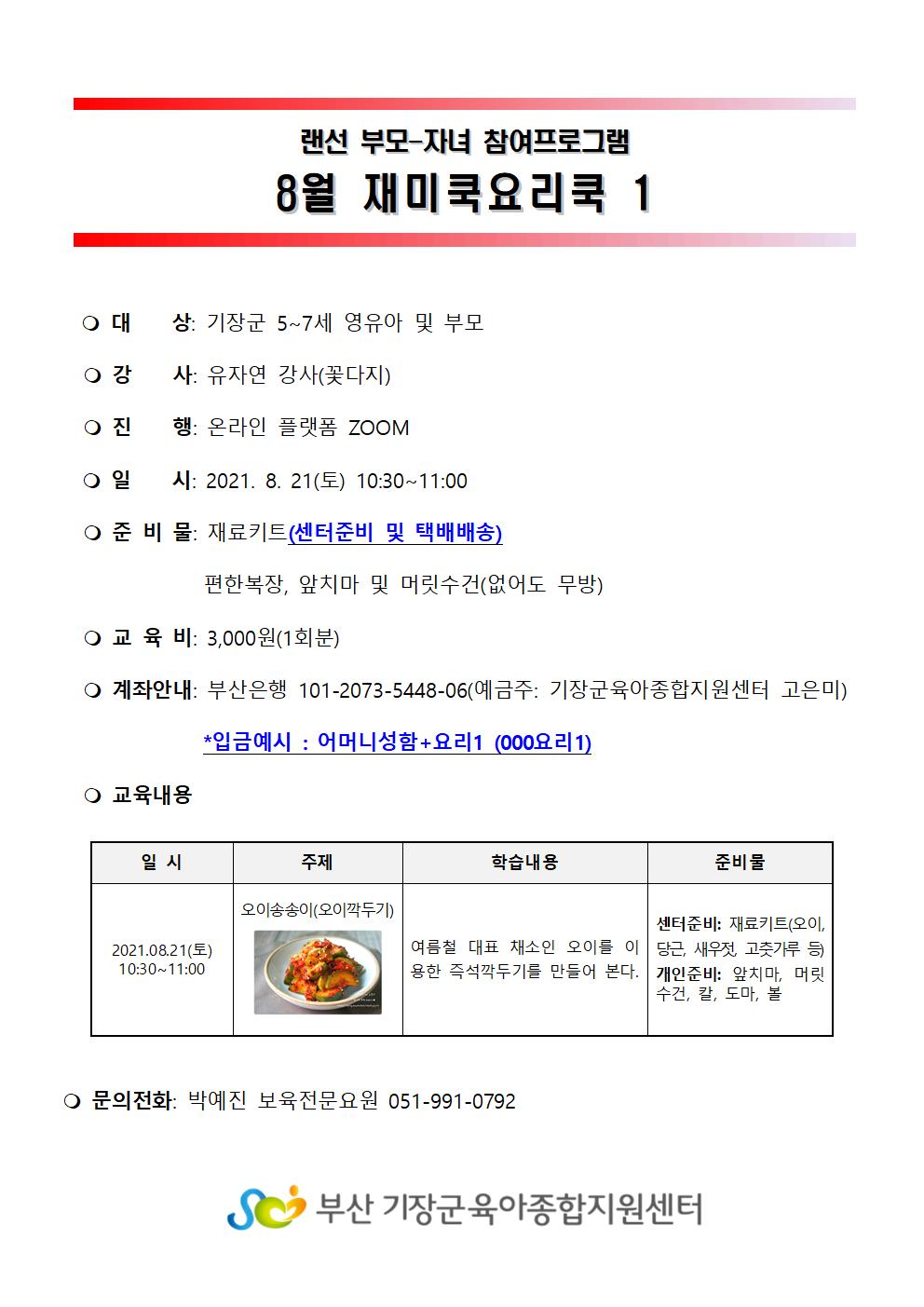 | 8¿ù ·£¼± ºÎ¸ð-ÀÚ³à Âü¿©ÇÁ·Î±×·¥ Àç¹ÌÄî¿ä¸®Äî 1 | |||