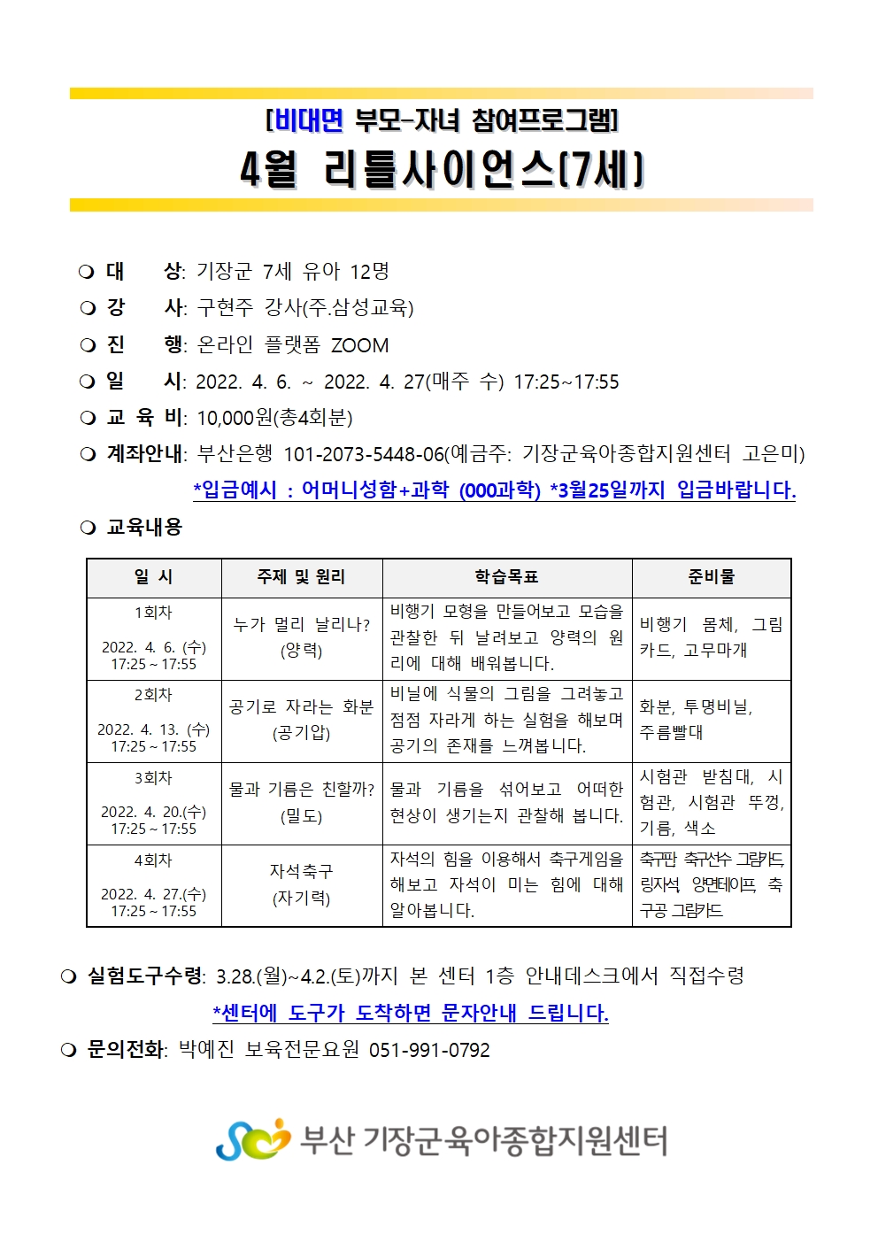 | ¹®ÀÇ | ¹Ú¿¹Áø º¸À°Àü¹®¿ä¿ø 051-991-0792 | ||