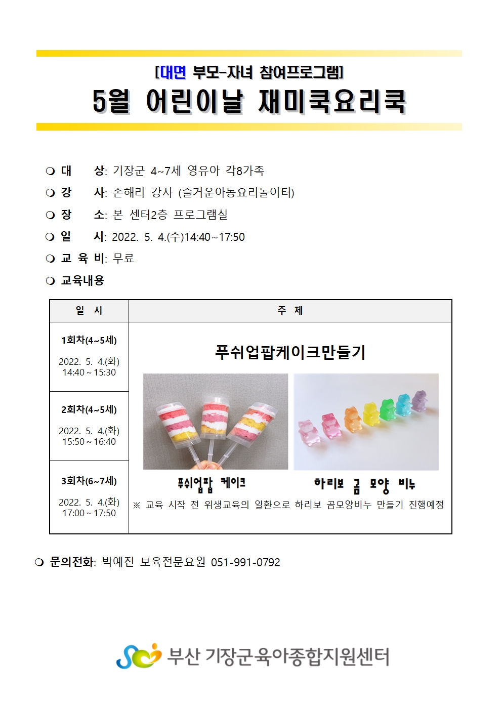 | ¹®ÀÇ | ¹Ú¿¹Áø º¸À°Àü¹®¿ä¿ø 051-991-0792 | ||