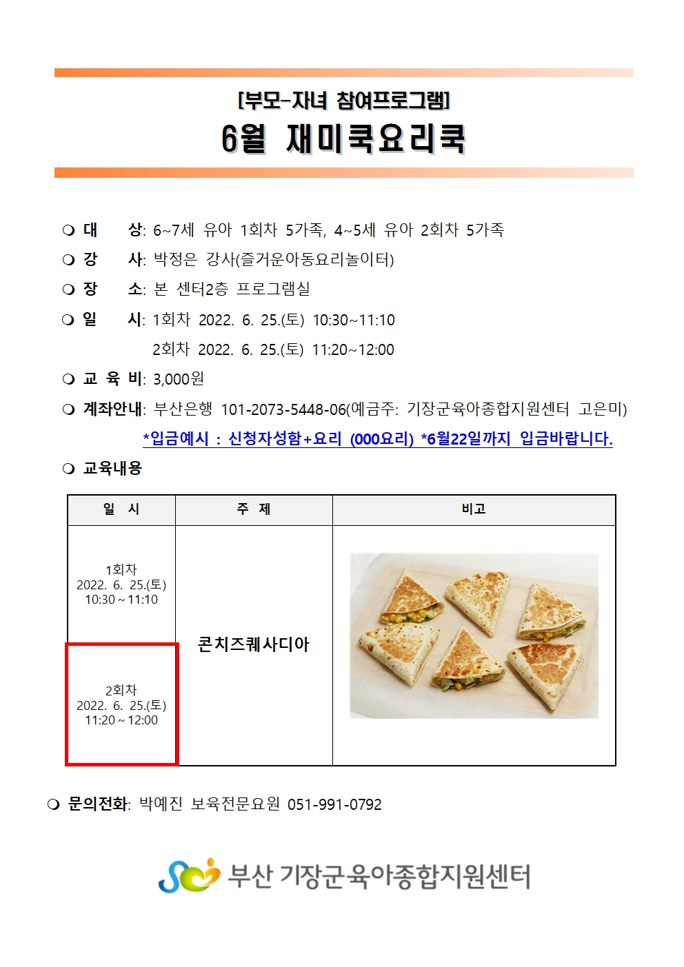 | ¹®ÀÇ | ¹Ú¿¹Áø º¸À°Àü¹®¿ä¿ø 051-991-0792 | ||