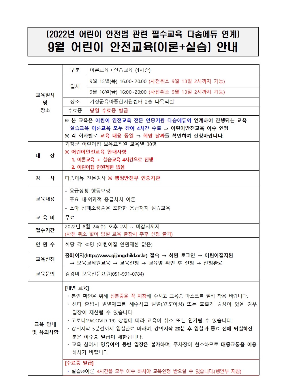 | [2022³â ¾î¸°ÀÌ ¾ÈÀü¹ý °ü·Ã Çʼö±³À°] 9¿ù ¾î¸°ÀÌ ¾ÈÀü±³À°(ÀÌ·Ð+½Ç½À) ¾È³» | |||