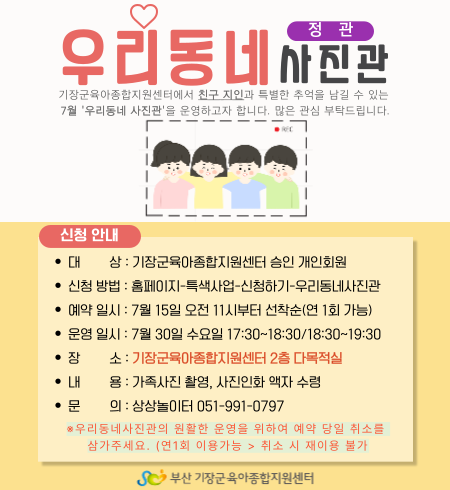 ±âŸ»çÇ× *7¿ù ¿ì¸®µ¿³× »çÁø°üÀº ±âÀ屺 À°¾ÆÁ¾ÇÕÁö¿ø¼¾ÅÍ(Á¤°ü)´Ù¸ñÀû½Ç¿¡¼­ ÁøÇàÇÕ´Ï´Ù.